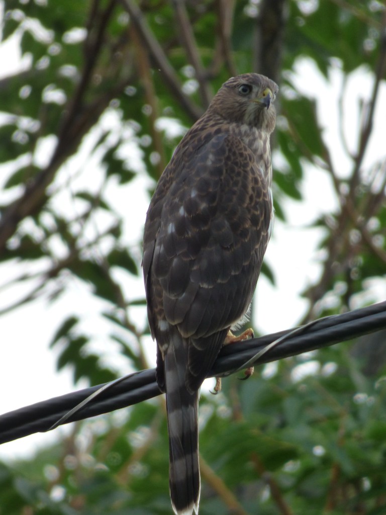 I have a lot of birds in the garden. Mostly finches and chickadees, but also a pair of doves, some raucous blue jays, sparrows, and the occasional nuthatch. Just yesterday a group of three flickers were happily aerating the back lawn for me. Recently I had a new family hanging out, a family of hawks. Now, I have to admit that I’m not 100% clear what kind of hawk they are. I have it narrowed down to either Cooper’s hawks or sharp shinned hawks – word is that they are difficult to tell apart and I am certainly no expert. Regardless of species, I think you’ll agree that it is somewhat cool to have a family of hawks hanging out in your back garden.